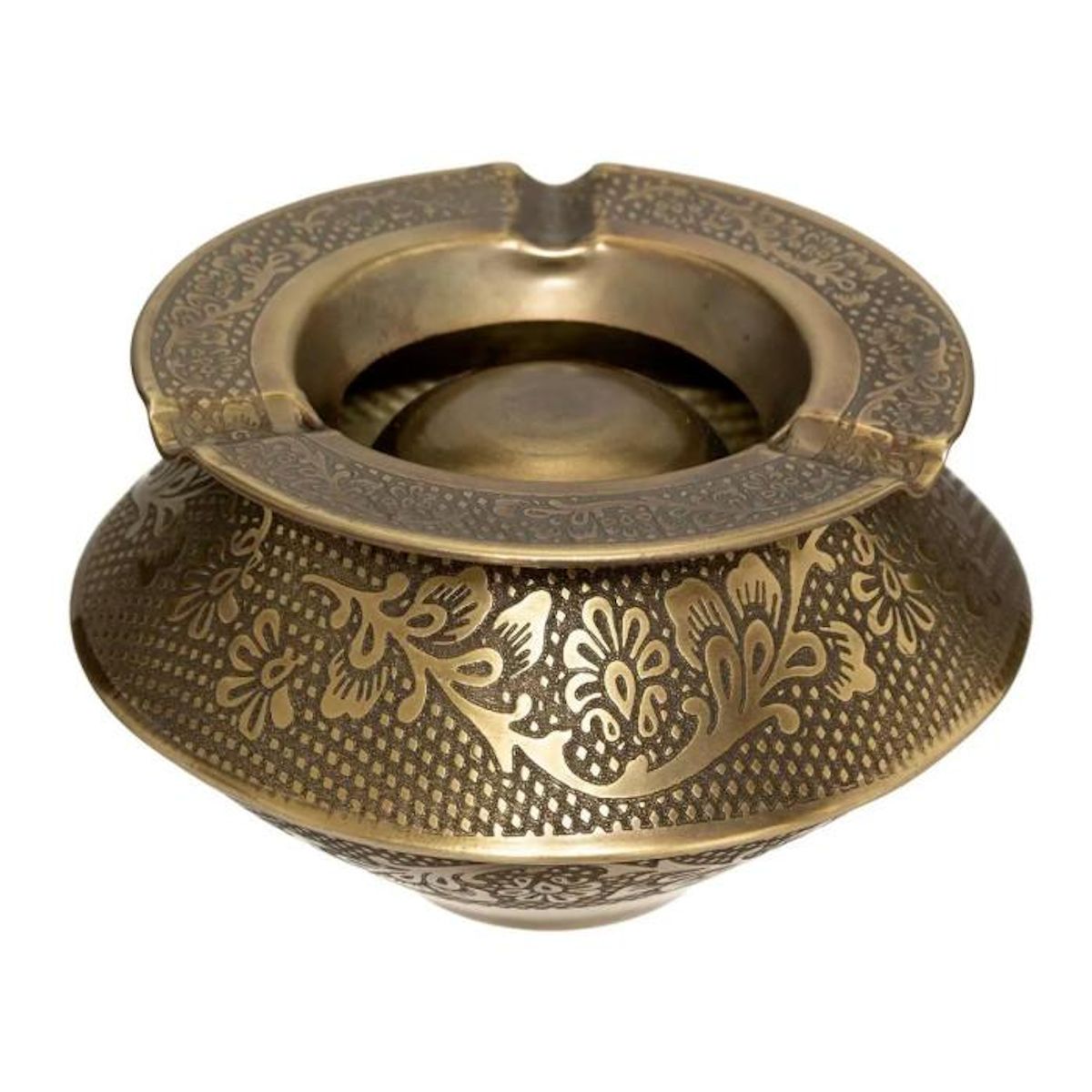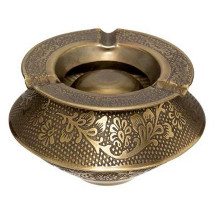 Informations Techniques : Dimensions : D. 12 x H. 7,5 cm Matière : Métal Spécificités : Tendance & Pratique Cendrier design Forme Ronde Style Ethnique Poids : 0,22 kg Couleur : Or