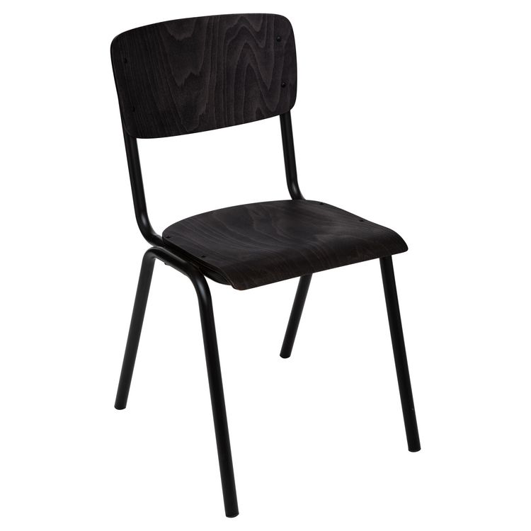 Chaise écolier assise bois pieds métal coloris noir SIMON