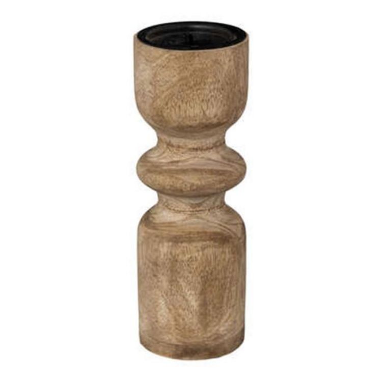 Informations Techniques : Dimensions : D. 8 x H. 23 cm Matière : Bois (Manguier) Spécificités : Pratique & Utile Chandelier Design Forme Ronde Bougie non incluse Poids : 0,652 kg Couleur : Marron