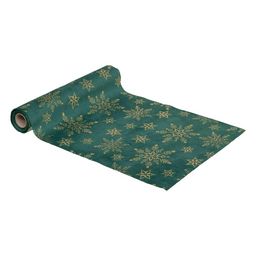 Chemin de table de Noël flocon effet velours - Vert et doré
