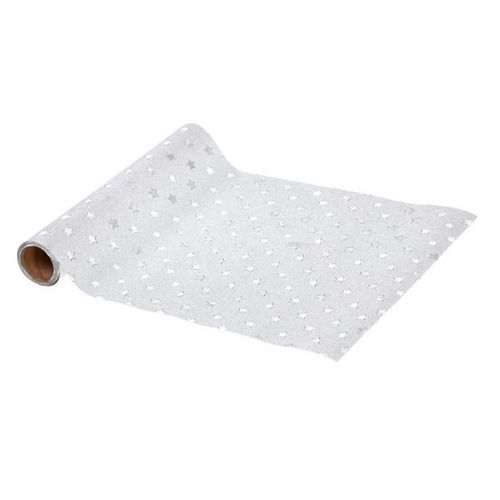 Informations Techniques : Dimensions : L. 500 x l. 28 cm Matière : Polypropylène Spécificités : Pratique & Utile Chemin de Table Forme Rectangulaire Motif Étoile Poids : 0,104 kg Couleur : Argent