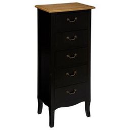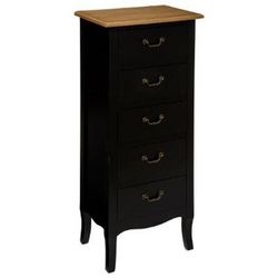 Informations Techniques : Dimensions : L. 45,2 x l. 30,1 x H. 113,4 cm Matières : MDF & Bois (Pin) Spécificités : Tendance & Déco Chiffonnier design 5 Tiroirs Poids : 13,3 Kg Couleur : Noir & Naturel