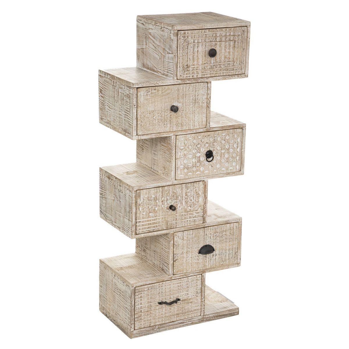 Déstructuré, ce chiffonnier à 6 tiroirs, de la gamme Ajay, apportera une touche brute à la décoration de votre intérieur. Pratiques et esthétiques, ses six tiroirs vous offriront des rangements discrets et vous permettra d'exposer vos objets de déco. Sa structure en bois de manguier contraste joliment avec ses détails de façades sculptés.