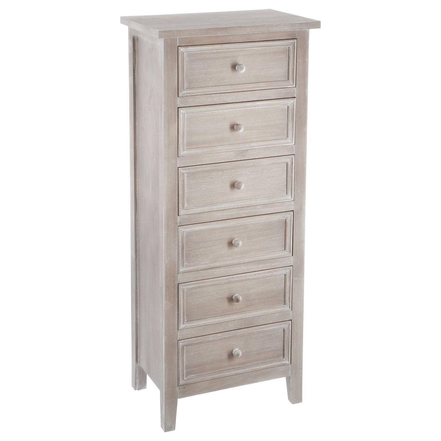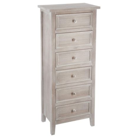 FICHE TECHNIQUE- Chiffonnier en Pin et MDF.- 6 Tiroirs de rangement.CARACTERISTIQUES TECHNIQUES- Dimensions : L. 45 x P. 30 x H. 113 cm.- Poids : 13,5 kg.