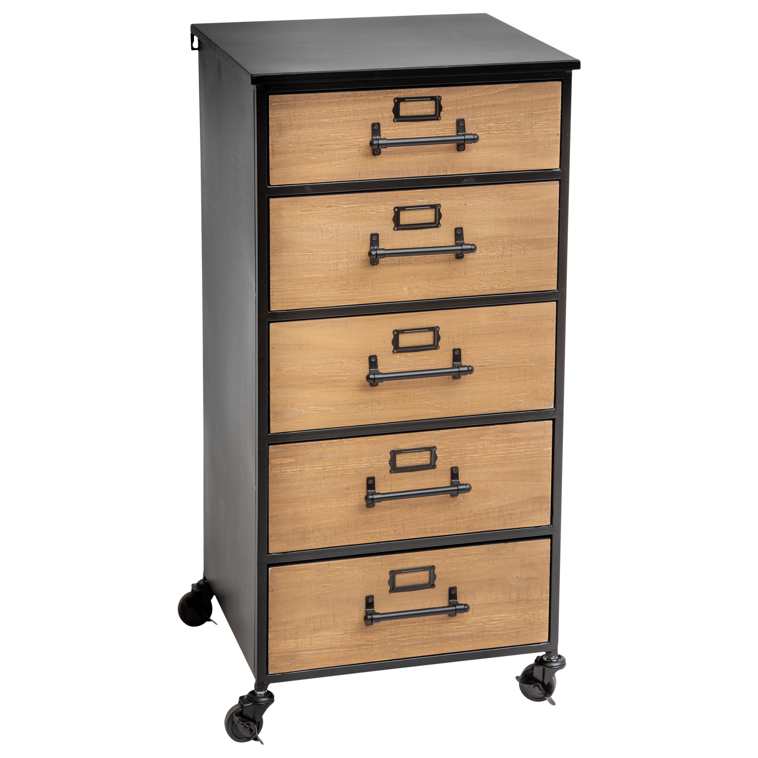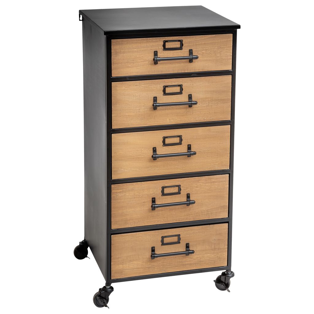 Chiffonnier en métal et bois sur roulettes 5 tiroirs H87cm PARIS
