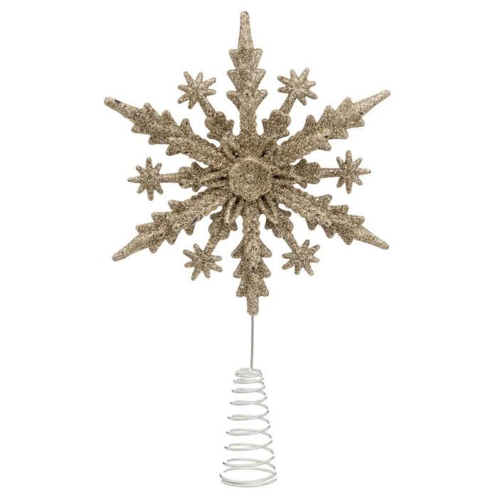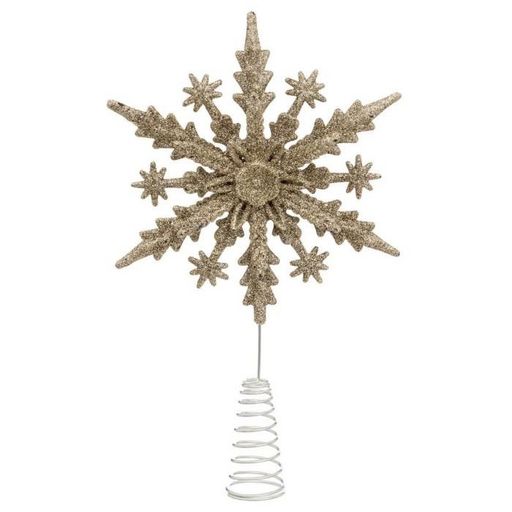 Cimier de Sapin Pailleté Flocon 23cm Or