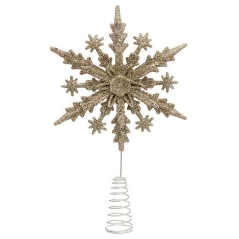Informations Techniques : Dimensions : L. 14 x l. 3 x H. 23 cm Matière : Polystyrène Spécificités : Pratique & Déco Cimier sapin de Noël Design flocon Poids : 0,05 kg Couleur : Or
