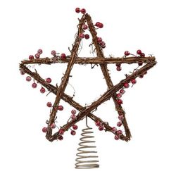 Cimier Sapin Étoile Bois & Baies 30cm Marron