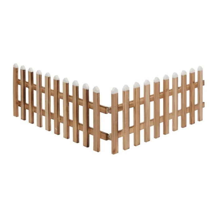 Informations Techniques : Dimensions : L. 90 x l. 3,7 x H. 20 cm Matière : Bois (Pin) Spécificités : Pratique & Utile Clôture en bois Avec fausse neige décorative Poids : 0,38 kg Couleur : Marron