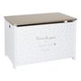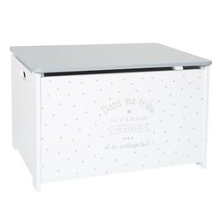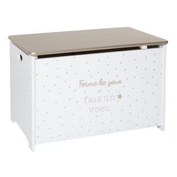 Pour que vos enfants puissent ranger leurs précieux jouets. Ce coffre trouvera facilement sa place dans sa chambre.FICHE TECHNIQUE- Dispose d'un vérin de sécurité pour une fermeture silencieuse et tout en douceur.- Message : Ferme les yeux et fais un vœux .- Couleur : Blanc et Doré.- Motif étoile- A
