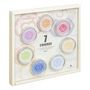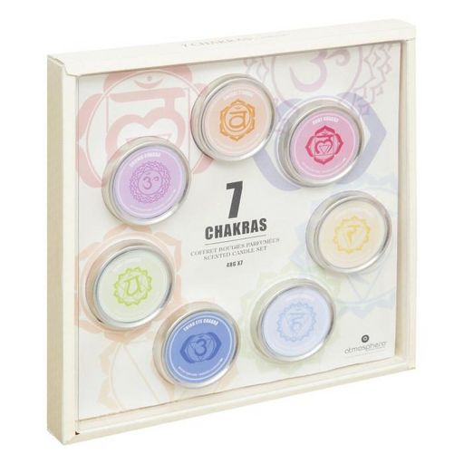 Informations Techniques : Dimensions : L. 26,5 x l. 26,5 x H. 3,2 cm Matières : Fer & Cire Spécificités : Pratique & Utile Coffret 7 Bougies Parfumées Forme Ronde Correspondant aux 7 Chakras (Racine, Sacré, Plexus Solaire, Coeur, Gorge, Couronne & 3ème Oeil) % de Parfum : 3 % Durée de Diffusion : 5