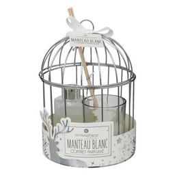 Informations Techniques : Dimensions : D. 14 x H. 20 cm Matières : Verre & Métal Spécificités : Pratique & Tendance Coffret diffuseur de parfum & bougie parfumée Présentés dans une cage Esprit de Noël Forme ronde Poids : 0,17 kg Couleur : Blanc