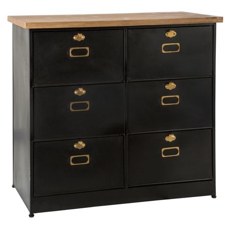 Commode de rangement en métal 6 tiroirs à clapet L85cm DANIELLE