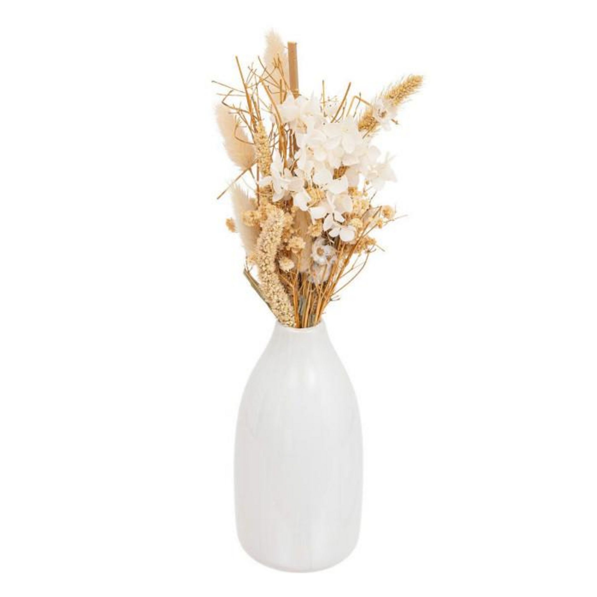 Composition de Fleurs Séchées Vase 25cm Blanc