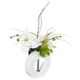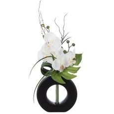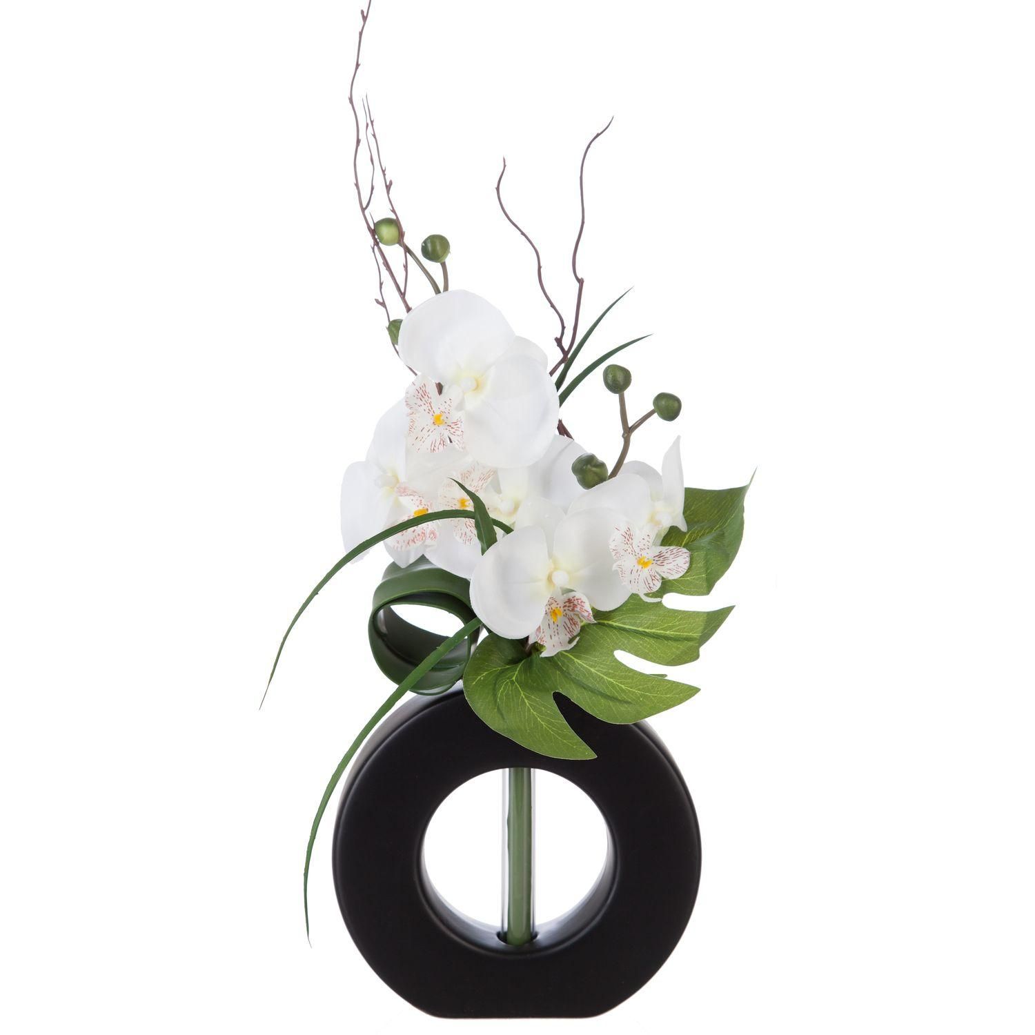 Composition florale vase blanc - Hauteur 44 cm - Orchidée fleur blanche