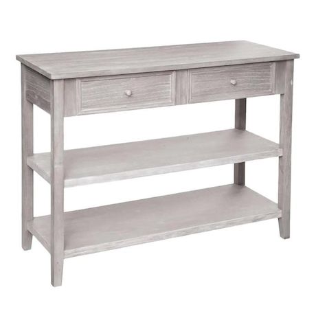 Informations Techniques : Dimensions : L. 110 x l. 40 x H. 85 cm Hauteur entre Étagères : 25 cm Tiroir : L. 42 x l. 25 x H. 12,5 cm Matières : MDF & Bois (Paulownia) Spécificités : Tendance & Pratique Console design 2 Tiroirs Style Vintage A monter soi-même Poids : 11 kg Couleur : Naturel