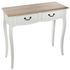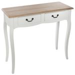Design et compact, vous serez sous le charme de cette console au design romantique. FICHE TECHNIQUE- Table en MDF et pin.- Couleurs : Bois et Blanc- 2 Tiroirs de rangement avec poignées en fer.CARACTERISTIQUES TECHNIQUES- Dimensions : L. 87 x P. 34 x H. 77,5 cm - Poids : 8,10 kg