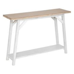 Informations Techniques : Dimensions : L. 120 x l. 35 x H. 83,5 cm Matières : Plateau & Étagère : Bois (Acacia) & MDF Piètement : Bois (Acacia) Spécificités : Authentique & Pratique Console avec étagère Forme rectangulaire À monter soi-même Poids : 13,5 kg Couleur : Blanc