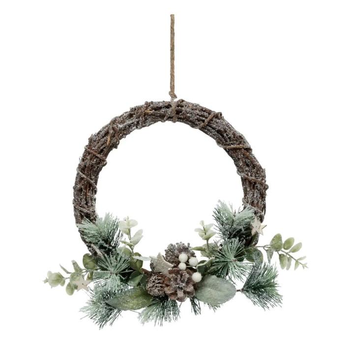 Couronne de Noël Enneigée Branches 28cm Multicolore