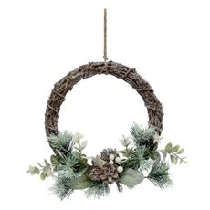 Informations Techniques : Dimensions : L. 25 x l. 2,5 x H. 28 cm Matière : PVC Spécificités : Déco & Festive Couronne de Noël murale Design branche enneigée Pommes de pin, étoiles et baies Poids : 0,12 kg Couleur : Multicolore