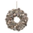 Informations Techniques : Dimensions : D. 34 x H. 8,5 cm Matières : Pomme de pin, PVC & Polystyrène Spécificités : Pratique & Déco Couronne de Noël Avec pommes de pin & boules de Noël Forme ronde Poids : 0,6 kg Couleur : Champagne