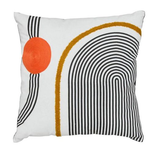 Informations Techniques : Dimensions : L. 45 x l. 45 x H. 10 cm Matières : Housse : 100% Coton Rembourrage : 100% Polyester Spécificités : Moelleux & Confort Coussin déco carré Motifs géométriques imprimés et brodés Déhoussable avec zip Lavage 30°C Poids : 0,51 kg Couleur : Noir & Blanc