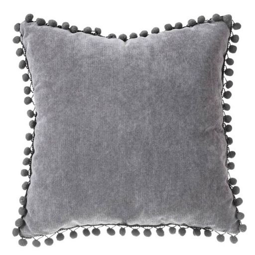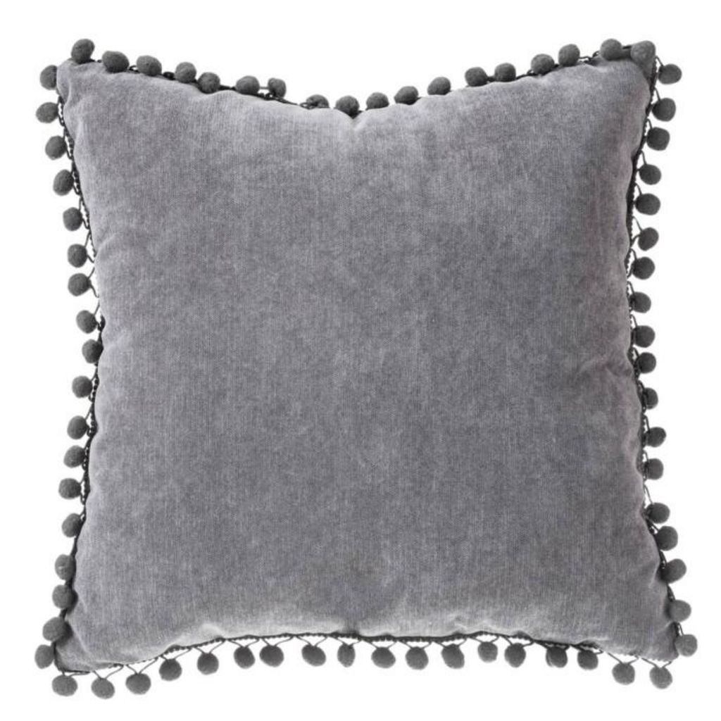 Coussin à Pompons Jao 40x40cm Gris Foncé