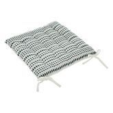 Informations Techniques : Dimensions : L. 38 x l. 38 x H. 5 cm Matière : Coton recyclé Spécificités : Pratique & Utile Coussin de chaise Tissu Jacquard Design formes géométriques Forme carrée Poids : 0,6 kg Couleur : Bleu Égéen
