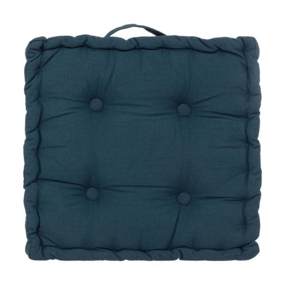 Informations Techniques : Dimensions : L. 40 x l. 40 x H. 8 cm Matière : 100% Coton Spécificités : Doux & Confortable Coussin de sol carré Design capitonné Avec poignée Poids : 1,1 kg Couleur : Bleu Égéen