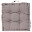 Informations Techniques : Dimensions : L. 40 x l. 40 x H. 8 cm Matière : 100% Coton Spécificités : Doux & Confortable Coussin de sol carré Design capitonné Avec poignée Poids : 0,51 kg Couleur : Gris