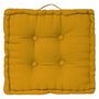 Informations Techniques : Dimensions : L. 40 x l. 40 x H. 8 cm Matière : 100% Coton Spécificités : Doux & Confortable Coussin de sol carré Design capitonné Avec poignée Poids : 0,51 kg Couleur : Ocre