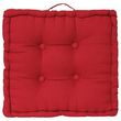 Informations Techniques : Dimensions : L. 40 x l. 40 x H. 8 cm Matière : 100% Coton Spécificités : Doux & Confortable Coussin de sol carré Design capitonné Avec poignée Poids : 0,51 kg Couleur : Rouge
