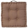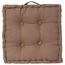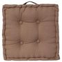 Informations Techniques : Dimensions : L. 40 x l. 40 x H. 8 cm Matière : 100% Coton Spécificités : Doux & Confortable Coussin de sol carré Design capitonné Avec poignée Poids : 0,51 kg Couleur : Taupe