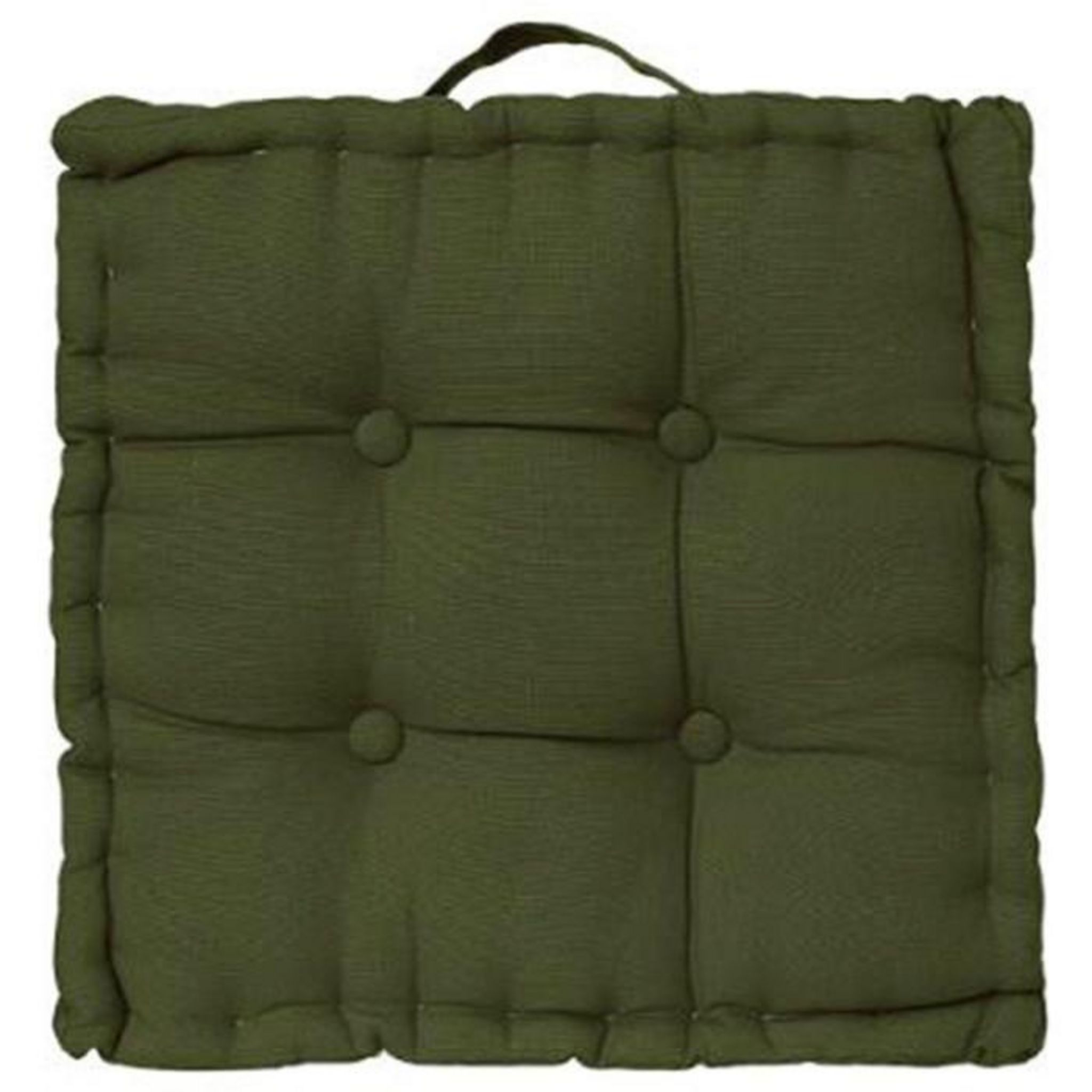 Informations Techniques : Dimensions : L. 40 x l. 40 x H. 8 cm Poignée : H. 2 cm Matière : 100% Coton recyclé Spécificités : Doux & Confortable Coussin de sol carré Design capitonné Avec poignée Poids : 1,22 kg Couleur : Vert Kaki