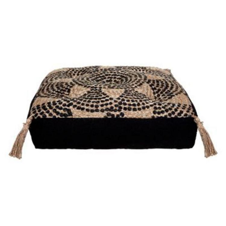 Coussin de Sol Jute Mandala 38x38cm Noir