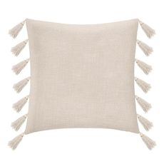 Informations Techniques : Dimensions : L. 50 x l. 18 x H. 50 cm Matières : Coton & Polyester Spécificités : Chic & Original Coussin Déco Forme Carrée Déhoussable 14 Pompons Facile d'Entretien & d'Utilisation Poids : 0,75 kg Couleur : Ivoire