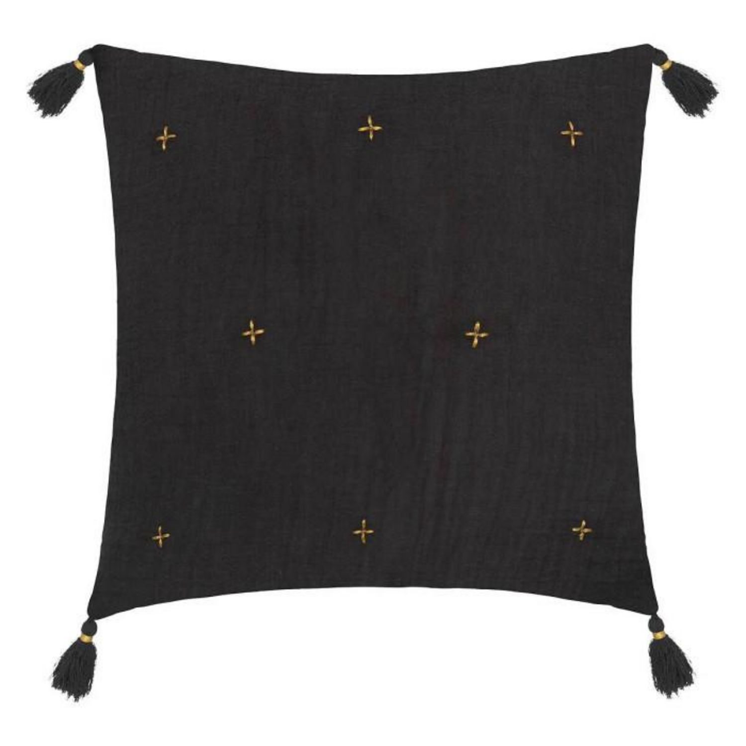 Informations Techniques : Dimensions : L. 40 x l. 40 x H. 10 cm Matières : Housse : Coton Rembourrage : Polyester Fermoir : Polypropylène Spécificités : Pratique & Utile Coussin déco déhoussable 4 pompons Borderie dorée Forme carrée Poids : 0,37 kg Couleur : Gris Foncé
