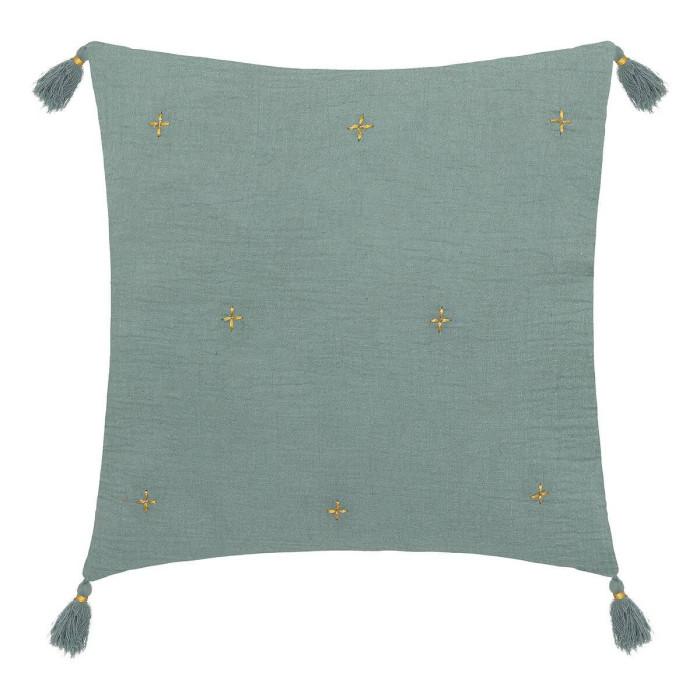 Informations Techniques : Dimensions : L. 40 x l. 40 x H. 10 cm Matières : Housse : Coton Rembourrage : Polyester Fermoir : Polypropylène Spécificités : Pratique & Utile Coussin déco déhoussable 4 pompons Borderie dorée Forme carrée Poids : 0,36 kg Couleur : Vert Céladon