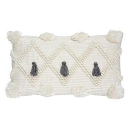 Coussin Déco à Pompons Row 30x50cm Gris