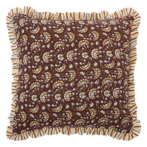 Informations Techniques : Dimensions : L. 40 x l. 40 x H. 8 cm Matières : Polyester & Coton Spécificités : Pratique & Utile Coussin déco A volant Motif fleuri Déhoussable Fermeture éclair Forme carrée Lavage en machine Poids : 0,38 kg Couleur : Violet & Cannelle