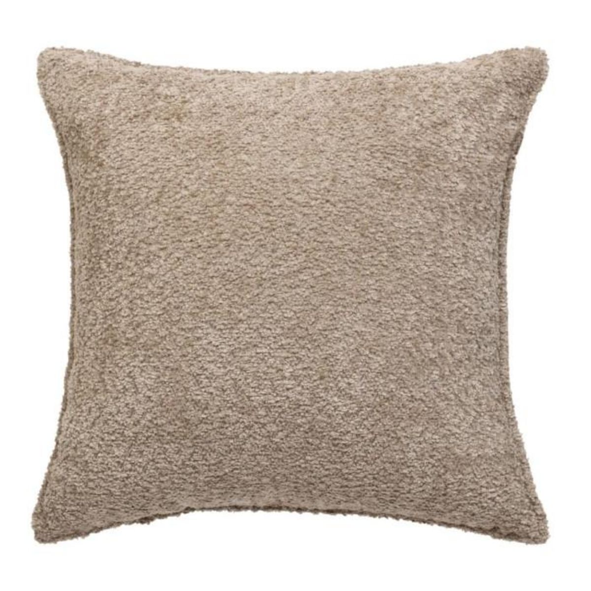 Informations Techniques : Dimensions : L. 45 x l. 45 x H. 7 cm Matière : Polyester Spécificités : Pratique & Doux Coussin déco sur face avant Dos en Velours Déhoussable Tissu bouclette Lavable à 30°C Label Oeko Tex Poids : 0,5 kg Couleur : Lin
