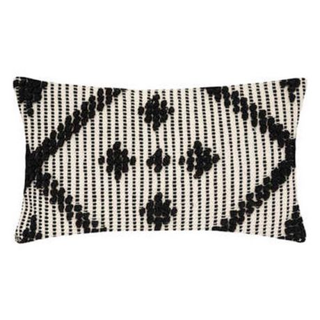 Informations Techniques : Dimensions : L. 58 x l. 12 x H. 38 cm Matières : Coton & Polyester Spécificités : Tendance & Moderne Coussin déco Déhoussable Avec Zip Motif en 3D Imprimé Ethnique Poids : 0,678 kg Couleur : Noir & Blanc