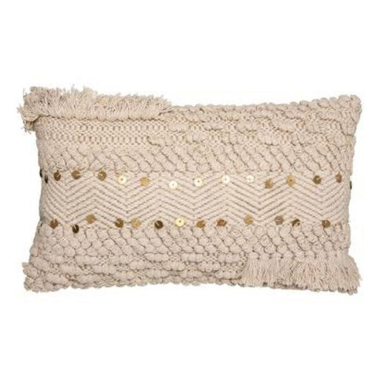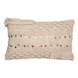 Coussin Déco Jute & Sequins 30x50cm Ivoire
