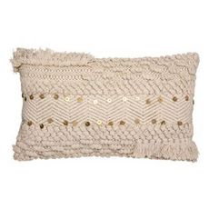 Informations Techniques : Dimensions : L. 50 x l. 14 x H. 30 cm Matières : Coton, Jute végétale & Polyester Spécificités : Pratique & Tendance Coussin déco Déhoussable Forme Rectangulaire A Sequins Poids : 0,7 kg Couleur : Ivoire
