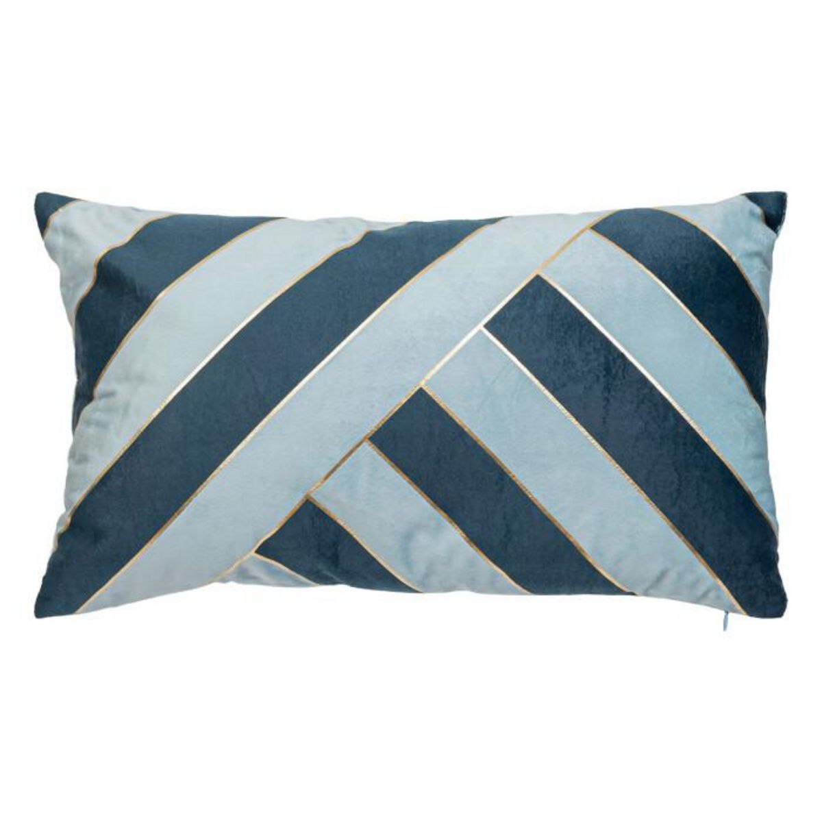 Coussin Déco Rayé en Velours Nelya 30x50cm Bleu