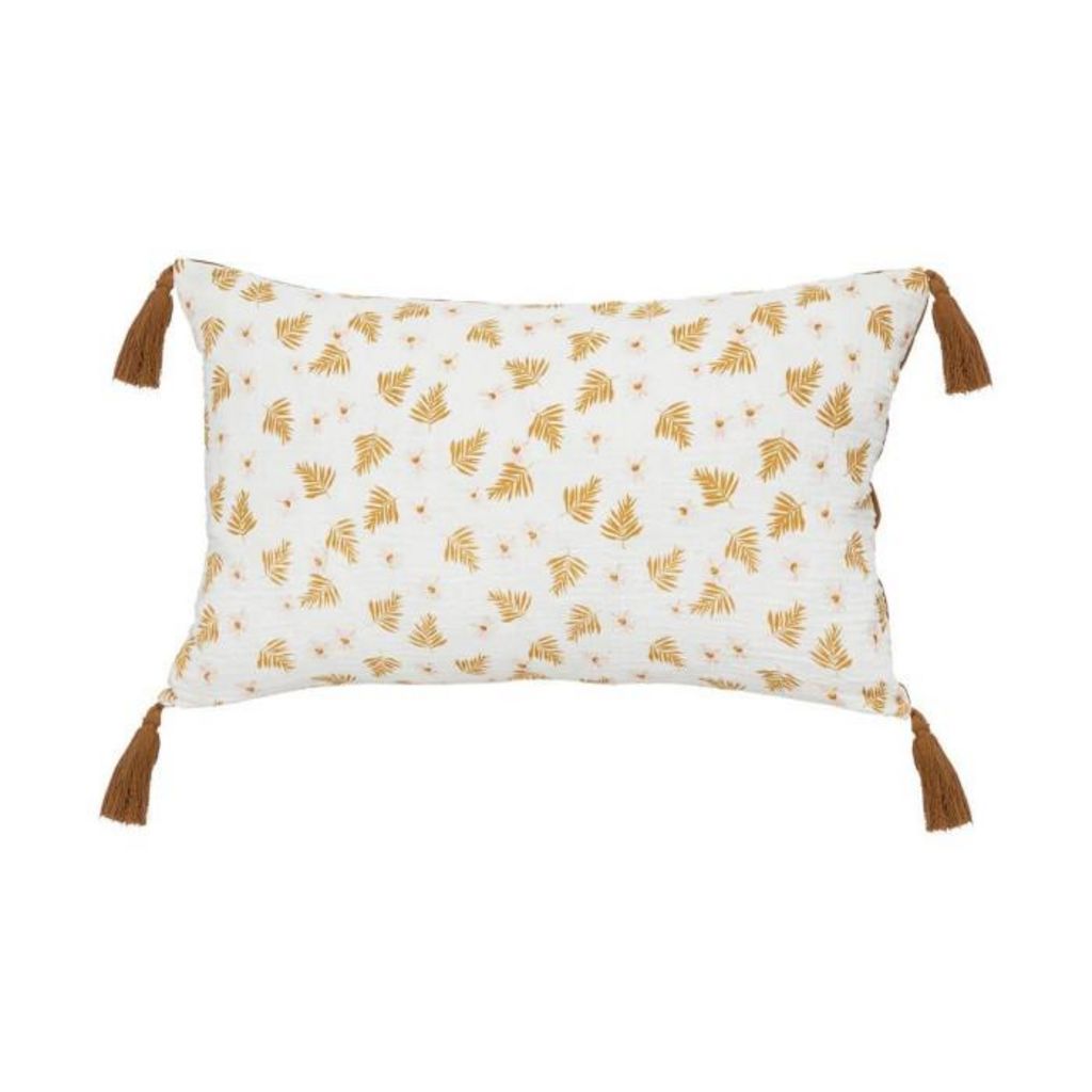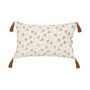 Informations Techniques : Dimensions : L. 50 x l. 30 x H. 10 cm Matières : Housse : Coton Rembourrage : Polyester Fermoir : Polypropylène Spécificités : Pratique & Utile Coussin déco déhoussable 4 pompons Imprimé végétal Forme rectangulaire Poids : 0,35 kg Couleur : Cannelle