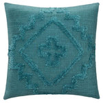 Coussin Déco Tufté Inca 40x40cm Bleu Canard