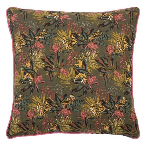 Changez de déco avec le coussin carré réversible Tropical boudoir coloris kaki. Ce joli coussin de 40x40 cm ajoutera une touche déco élégante à votre intérieur.Informations sur le coussin Tropical boudoir :Coloris : kakiDimensions : 40x40 cmComposition : polyester, cotonFermeture zipPoids : 360 g