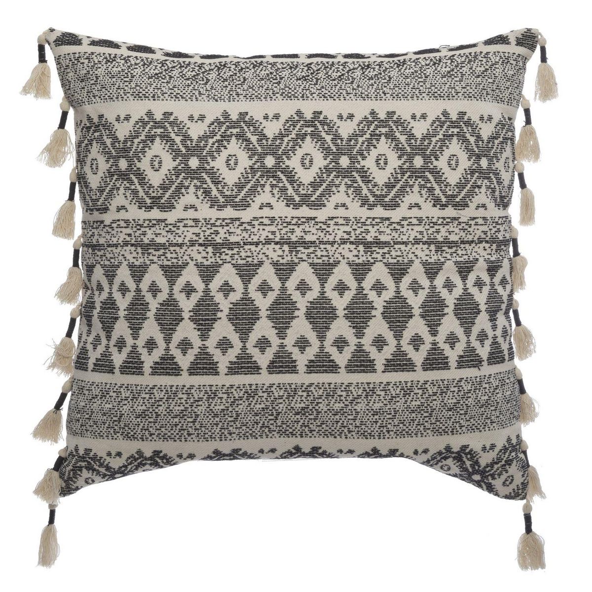 Amenez une touche de couleur avec ce coussin 60 x 60 cm déhoussable 100% coton.FICHE TECHNIQUE- Coussin.- Modèle carré.- Détails : 8 Pompons sur 2 côtés du coussin.- Coussin déhoussable.- Couleur : Noir et Blanc.- Gamme : Rituality.- Matière : Coton et Polyester.CARACTERISTIQUES TECHNIQUES- Dimensio