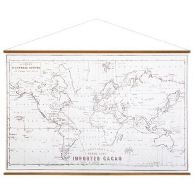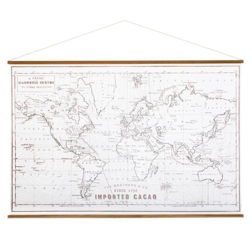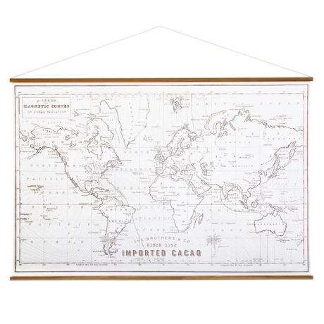 Informations Techniques : Dimensions : L. 110 x l. 2 x H. 74 cm Corde : H. 90 cm Anse : H. 15 cm Matières : Polyester, Sapin & Coton Spécificités : Tendance & Moderne Déco Murale à Suspendre Carte du Monde Forme Rectangulaire Facile d'Utilisation Poids : 0,540 kg Couleur : Blanc